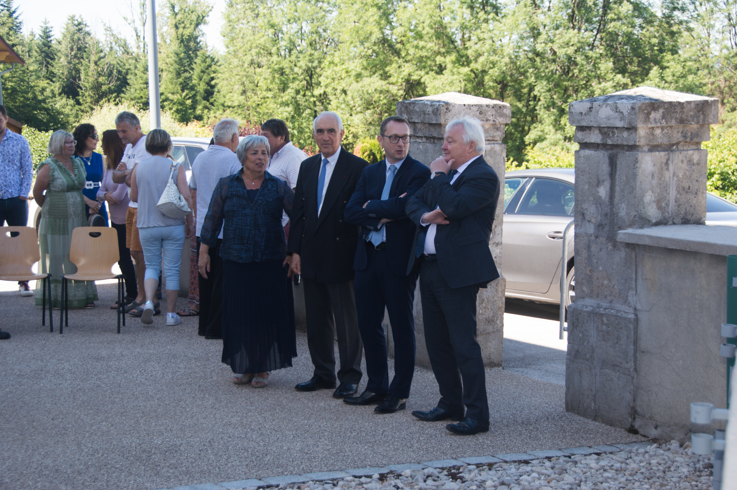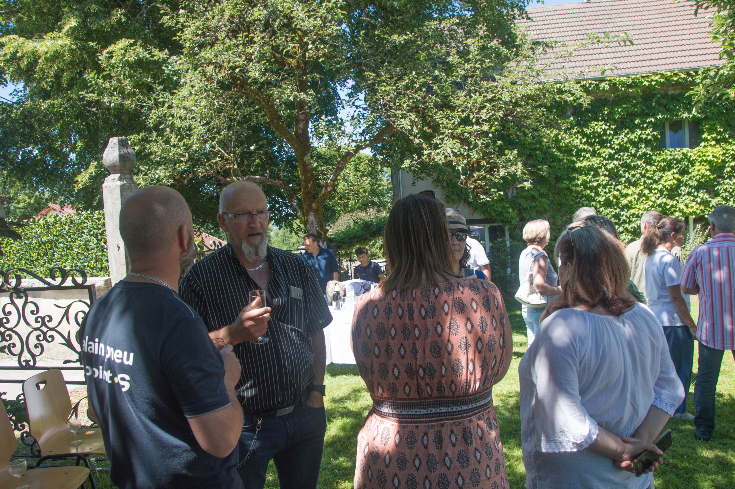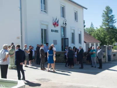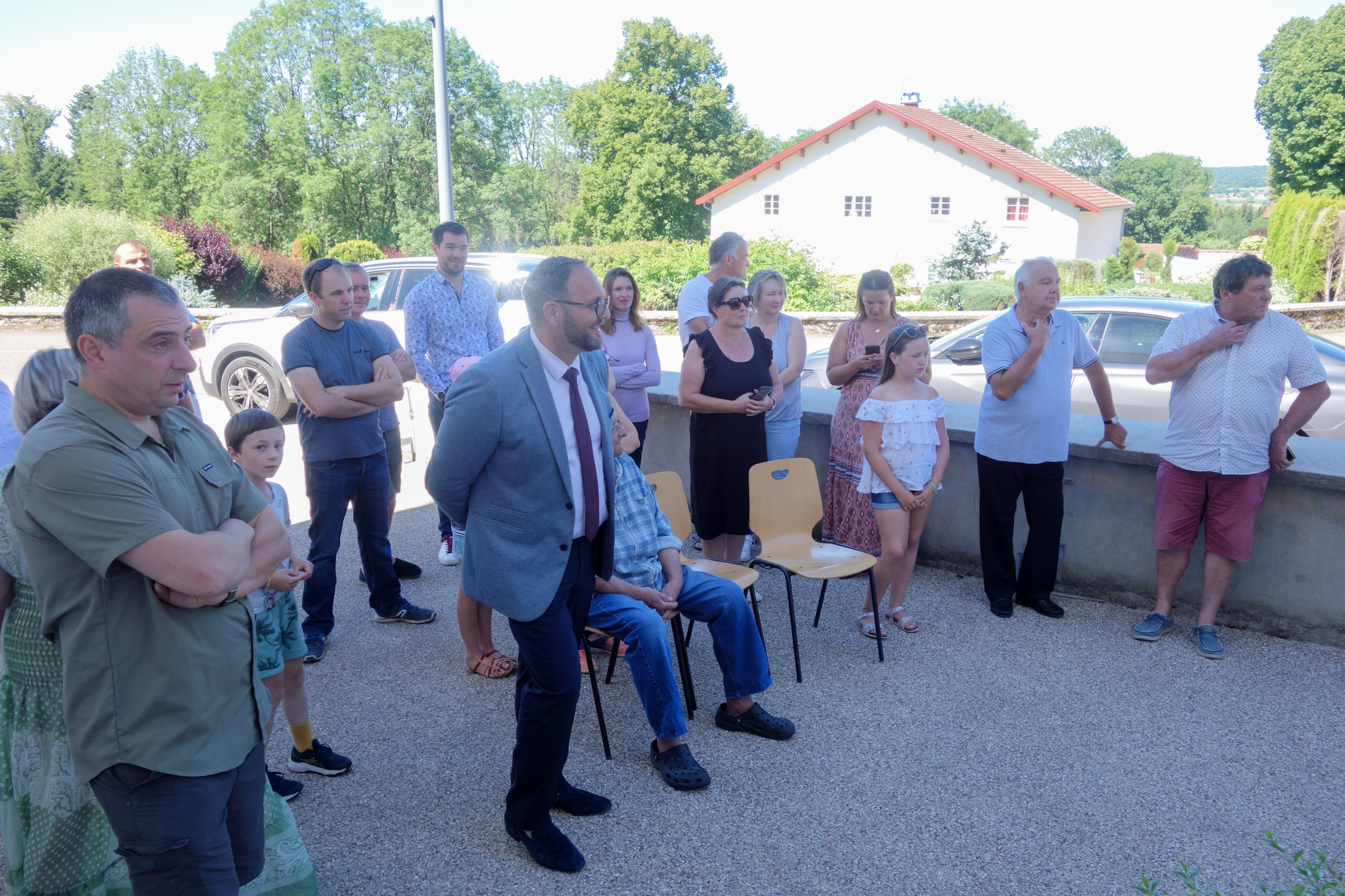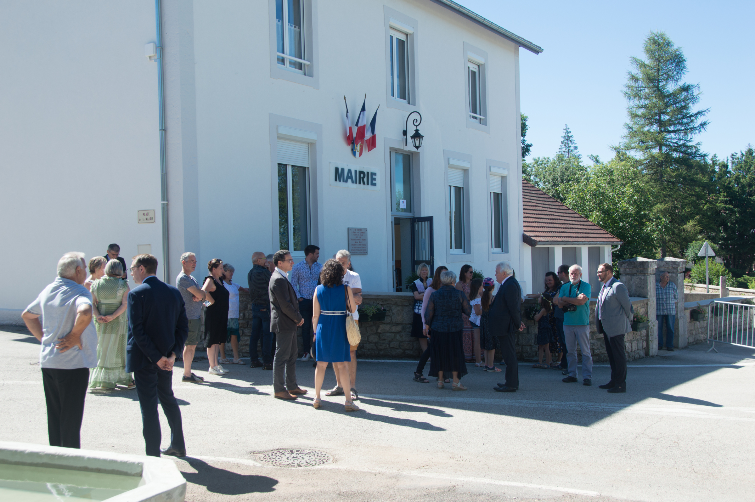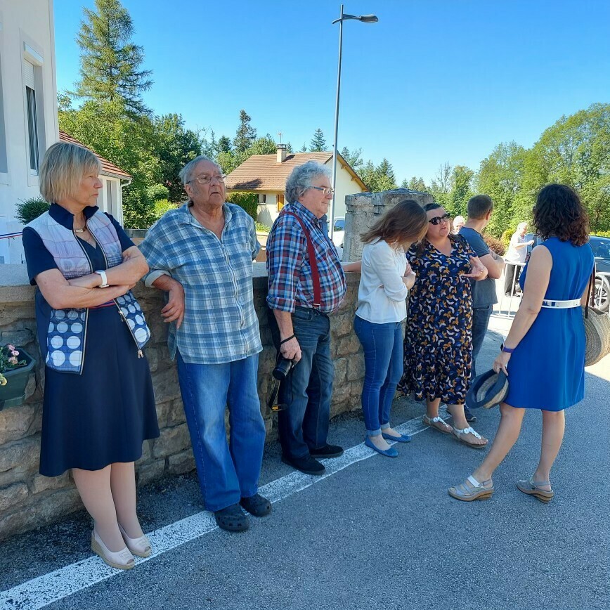 A l’occasion de la fin des travaux de réfection de la mairie et de la fontaine, le conseil municipal a organisé une manifestation samedi 2 juillet 2022 afin de remercier les institutions ayant largement subventionné les travaux. Après l’accueil des autorités M David PHILOT préfet du Jura, Mme Marie-Christine DALLOZ, député de notre circonscription et M Clément PERNOT, président du conseil départemental et de la communauté de communes Champagnole Nozeroy Jura et les discours, le ruban tricolore permettant d’accéder à la mairie a été coupé. Après la visite du rez de chaussée de la mairie, les autorités se sont rendues à la fontaine où il a été procédé à sa mise en eau. Un vin d’honneur a été servi à l’issue de la cérémonie dans la propriété de M et Mme WHELAN aimablement mise à la disposition de la mairie. La population et les autorités ont pu ainsi passer un très agréable moment convivial dans un cadre verdoyant à côté de la fontaine.