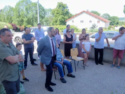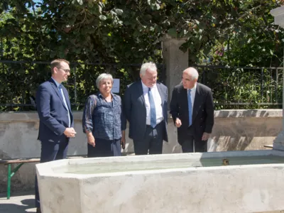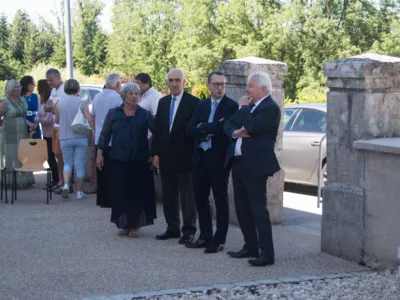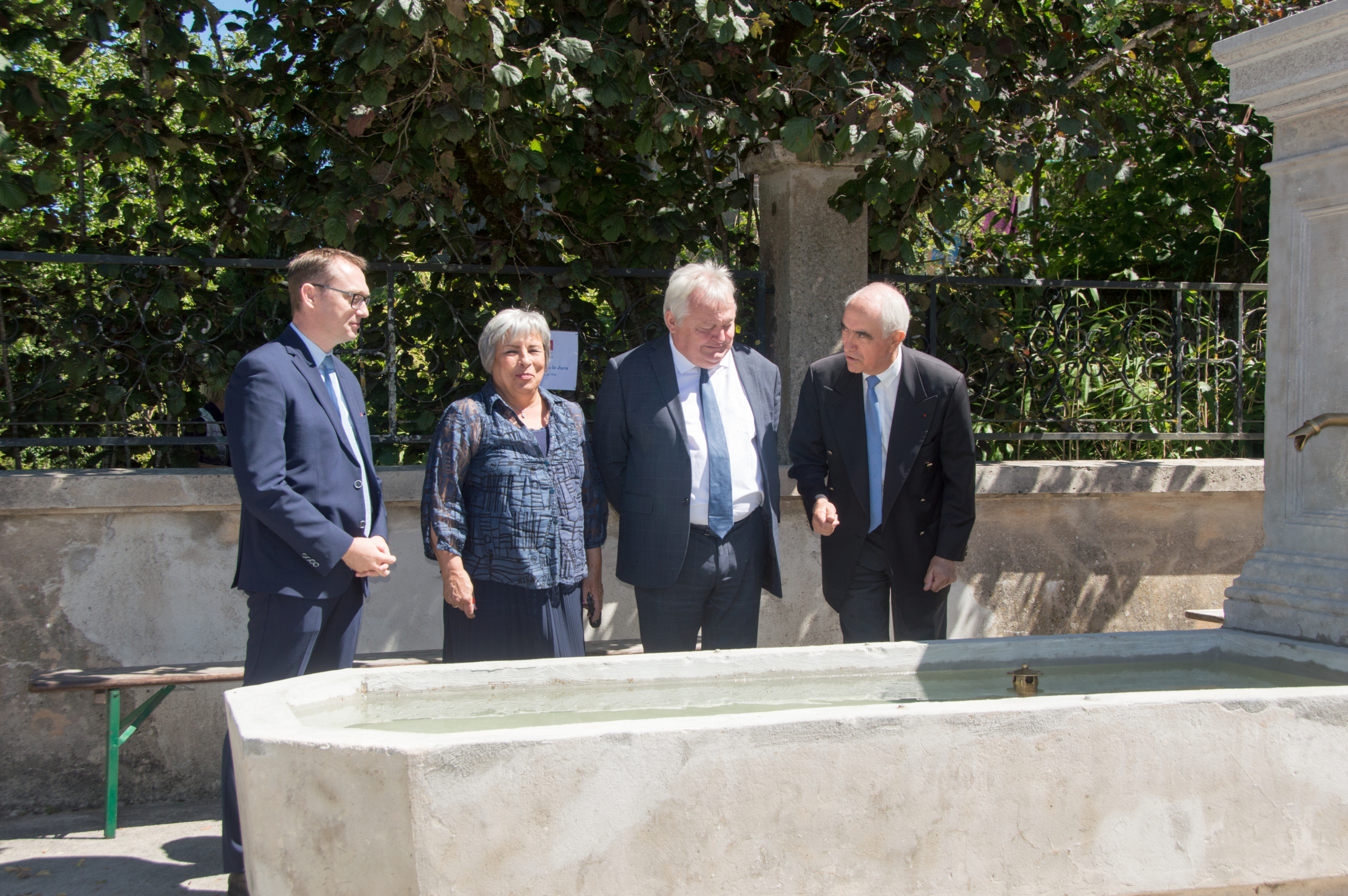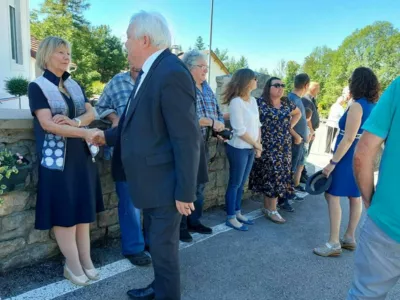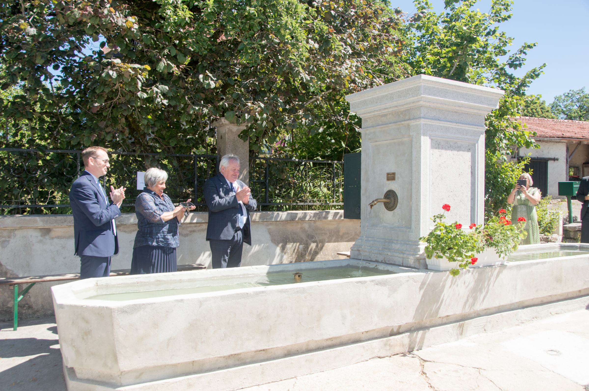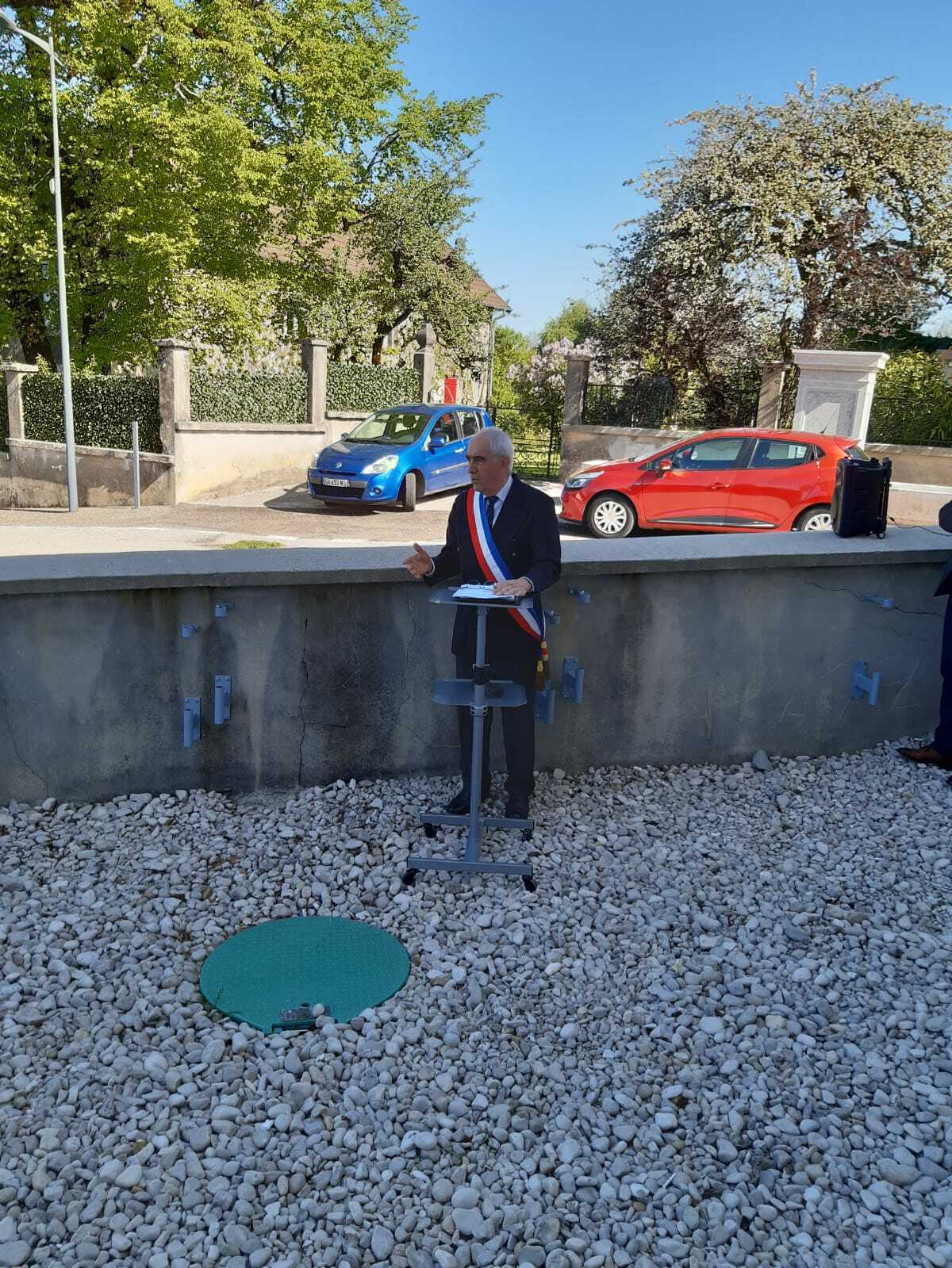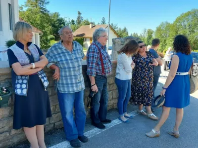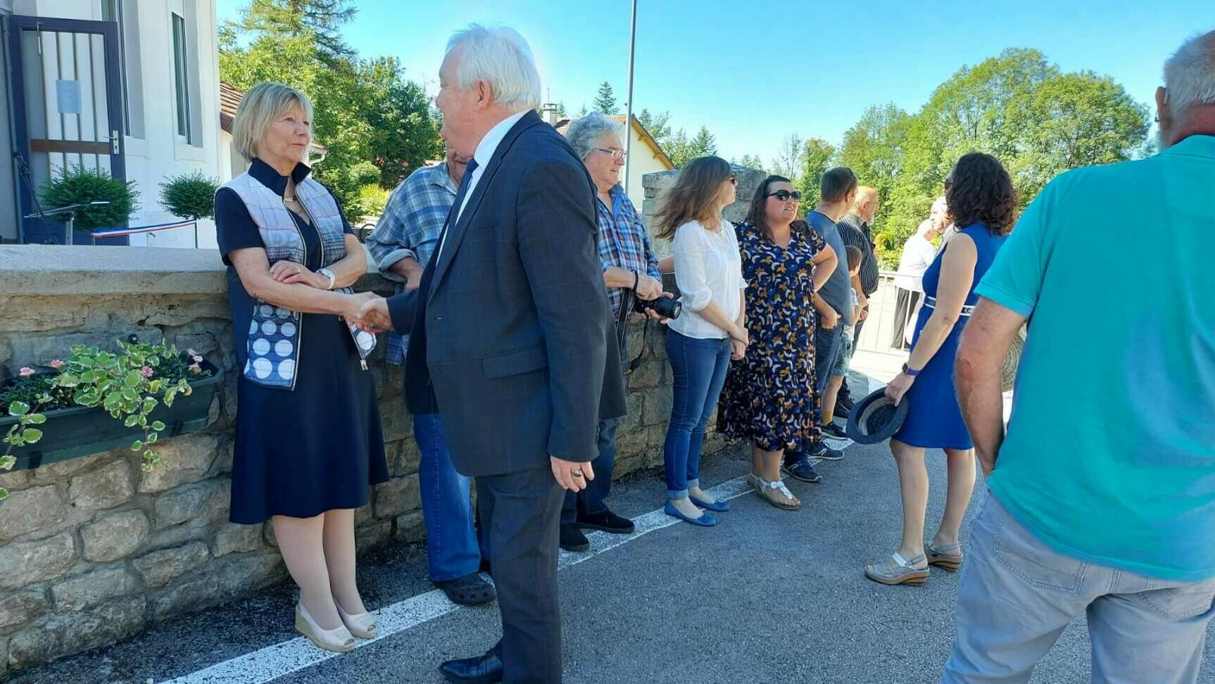 A l’occasion de la fin des travaux de réfection de la mairie et de la fontaine, le conseil municipal a organisé une manifestation samedi 2 juillet 2022 afin de remercier les institutions ayant largement subventionné les travaux. Après l’accueil des autorités M David PHILOT préfet du Jura, Mme Marie-Christine DALLOZ, député de notre circonscription et M Clément PERNOT, président du conseil départemental et de la communauté de communes Champagnole Nozeroy Jura et les discours, le ruban tricolore permettant d’accéder à la mairie a été coupé. Après la visite du rez de chaussée de la mairie, les autorités se sont rendues à la fontaine où il a été procédé à sa mise en eau. Un vin d’honneur a été servi à l’issue de la cérémonie dans la propriété de M et Mme WHELAN aimablement mise à la disposition de la mairie. La population et les autorités ont pu ainsi passer un très agréable moment convivial dans un cadre verdoyant à côté de la fontaine.