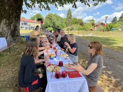 Dimanche 26 juillet, la mairie a organisé un repas champêtre à proximité du Four des Canadiens. La bonne ambiance était au rendez-vous. Le site est remarquable avec un point de vue imprenable sur l'Etang du Pasquier. Les enfants se sont égayés dans les champs et ont participé à l'animation sonore.